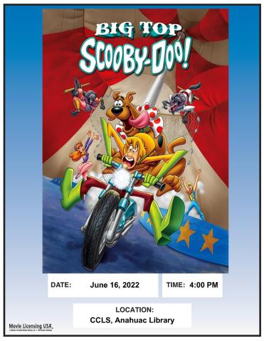 Showing at the Chambers County Library, Anahuac at 4:00pm: Big Top Scooby-Doo! [Not rated, 80 mins.].