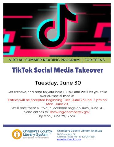Get creative and send us your best TikTok, and we’ll let you take over our social media! Entries will be accepted from Tuesday, June 23 to Monday, June 29. We'll post them to our Facebook page on Tuesday, June 30.