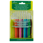 These crochet hooks come with different colored handles to make the 10 sizes easy to identify.