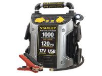 The "STANLEY 1000 Peak Amp Jump Starter with Compressor...packs 500 amps of instant starting power, as well as 1000 peak amps, offering a convenient, portable way to jump-start your battery without relying on another vehicle. All you need to do is connect...the clamps to your battery, turn on the switch and start your vehicle. A built-in safety system sounds an alarm if you connected the clamps incorrectly. This jump starter also has a built-in USB port, highly useful if you need to charge your phone, and the 120-psi compressor can help with low tires.